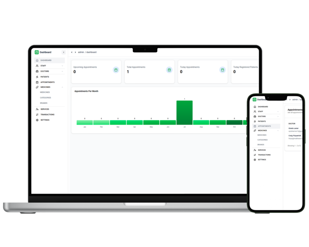 All-in-one healthcare CRM for managing doctors, patients, appointments, medicines, and billing with secure role-based access, streamlining operations, and enhancing patient care.