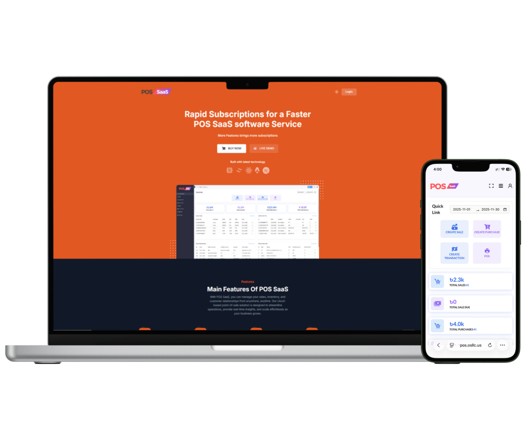 All-in-one POS platform with sales, inventory, and supplier management. Includes invoice generation, return handling, accounting reports, and employee role management tools for streamlined business operations.